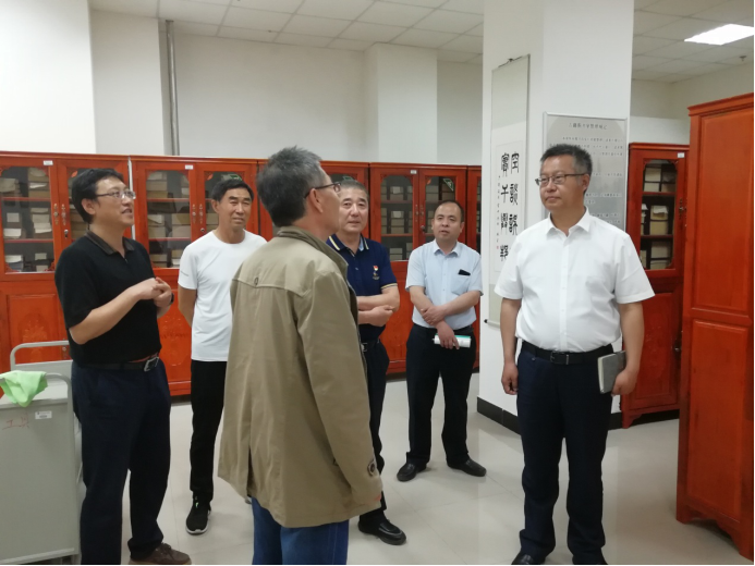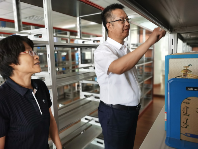 金桩院长分别考察了网络中心机房和图书馆各楼层的布局和主要功能,尤其详细考察了图书馆特色馆藏库和古籍库,察看过程中不时和工作人员交流,对这两库室表示特别关注。