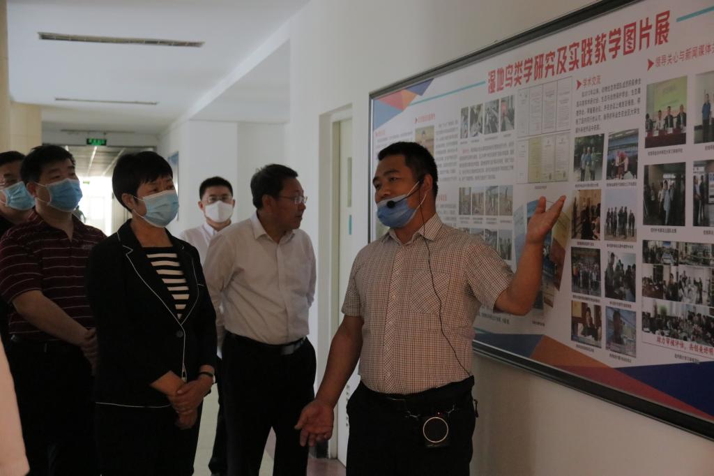 在生物科学与技术学院,调研组参观了“包头黄河湿地生态研究鸟类图片展”、生态学研究室和生物化学与分子生物学研究室,从学科发展时代背景、研究区域、研究进展、与地方经济社会发展相结合等方面详细了解了包头黄河湿地生态保护与建设项目进展情况。王秀莲同志对我校教师发挥专业特长,在艰苦环境下积极开展服务地方生态建设工作给予高度评价,并就进一步推进校地合作提出了建设性意见。