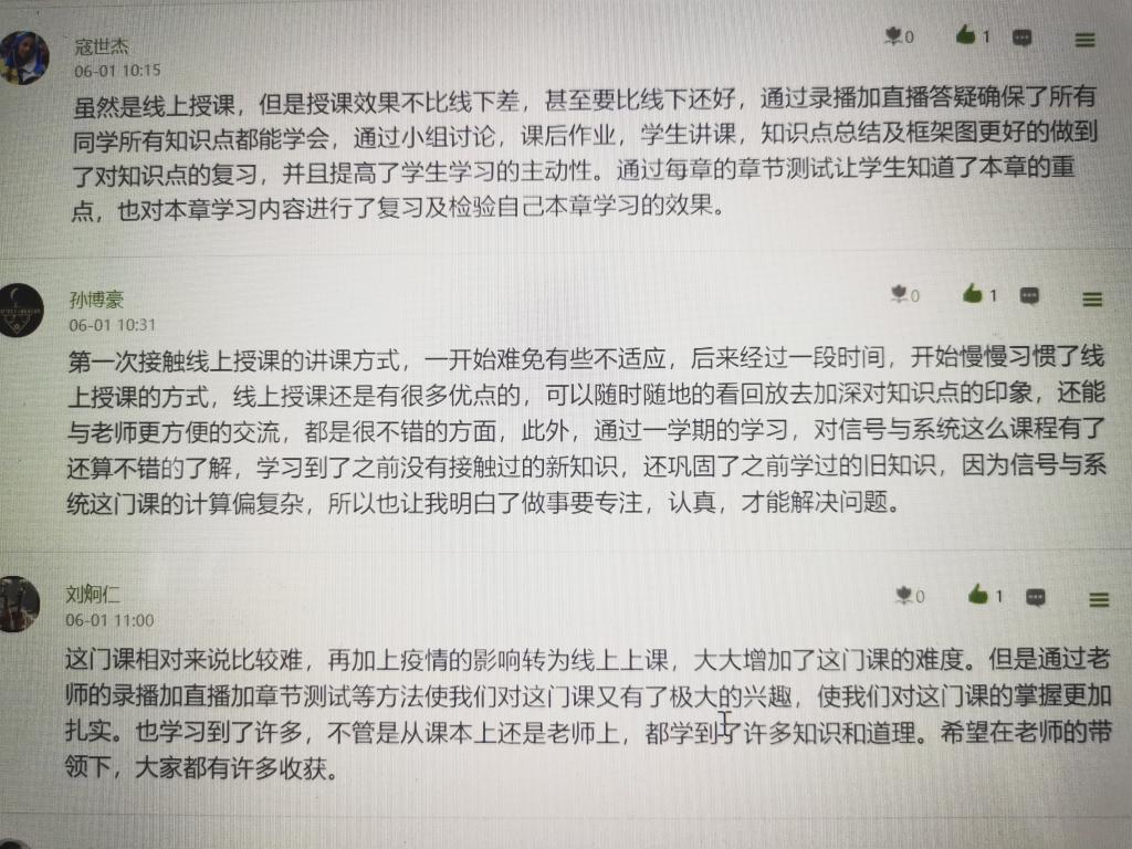 通过基于超星学习通在线学习平台的线上教学模式改变了传统的线下课堂模式,《信号与系统》课程的教学提高了教学效率、质量和效果。学生有效利用了碎片化时间实现随时随地学习,与师生的互动得到加强,也获得了良好的学习体验,充分体现了以学生为中心的教学理念,达到了预期的教学目标。