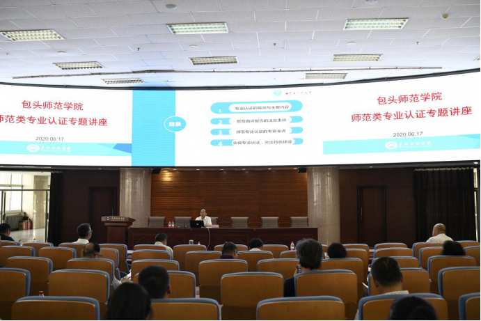 为扎实推进学校师范类专业认证工作,进一步做好师范类专业认证的组织和准备,6月17日,教育部师范类专业认证专家、原内蒙古民族大学副校长刘宗瑞教授应邀来我校作题为“筑强国之基 育卓越人才”的专题讲座。校领导王永明、金桩、王有亮、双山出席会议,各职能部门负责人、二级学院领导班子成员、师范类专业负责人、校内师范专业认证专家、教育科学学院教师、教务处全体工作人员聆听了讲座。