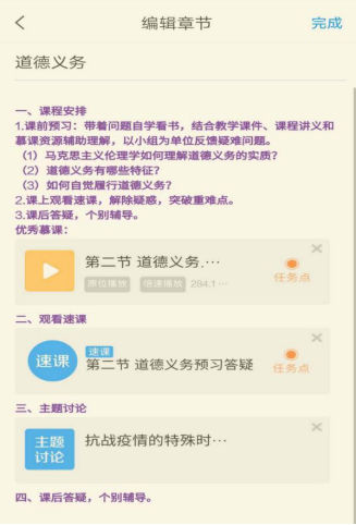 本课程借助超星学习通+微信群线上平台,采用国家精品慕课+自录速课相结合的方式开展教学。优选湖南师范大学王泽应教授主讲的国家级精品共享课《伦理学》,该课程内容严谨,课程资源丰富。利用超星学习通平台构建课程,发布课前预习任务,上传课程简介、课程大纲、课程教材、课程教案(讲义)、自录速课、教学课件、课程题库、教学案例库、经典讲座、参考书目等教学资源。在讨论模块进行主题讨论和案例分析,实现即时互动。课后教师在微信群集中组织集体答疑和个别指导。