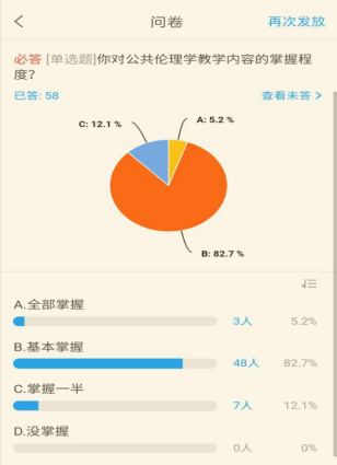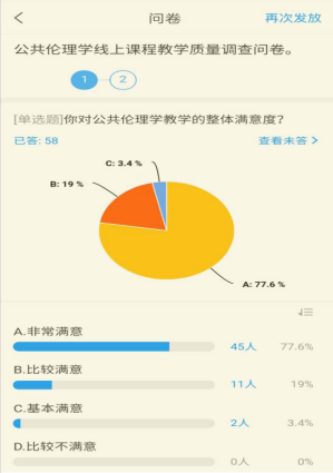 通过调查问卷、个别访谈以及相关教学监测数据分析,这种任务驱动式教学模式得到了学生的普遍认可。课前自学任务的布置、课中疑难问题的解答和主题讨论,课后的跟踪测试和反馈,全程充分发挥了学生的主体作用,既提升了学生的课堂参与度和学习兴趣,培养了学生的自主学习能力,又有效地保证了上课的效率。总体来看,教学效果良好,基本实现了预期的教学目标,有利于落实课程思政的理念。