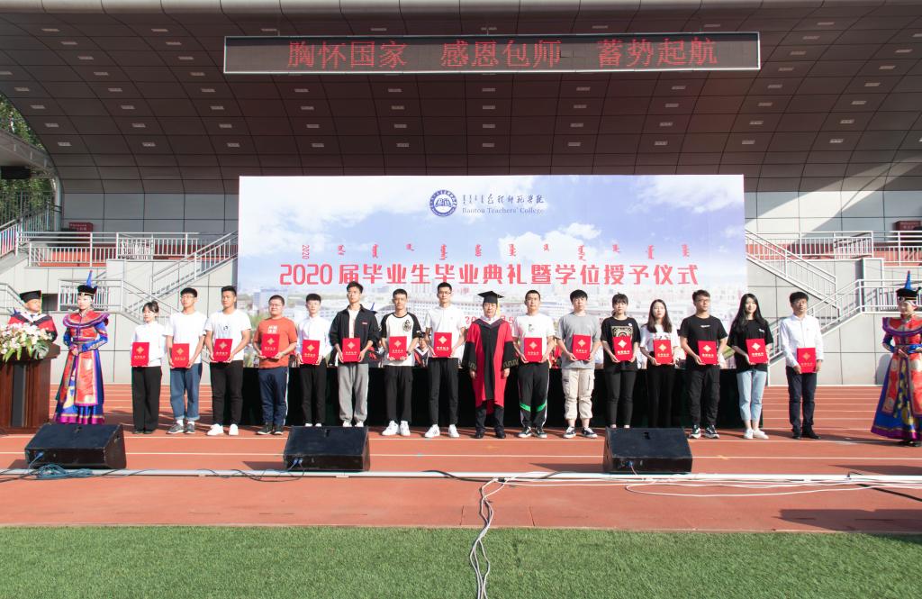 “火红的七月,亮丽的青春”。7月5日清晨,包头师范学院2020届毕业生毕业典礼暨学位授予仪式在田径运动场上举行。因疫情影响,今年的毕业典礼较为特殊,没有像以往一样在会堂举行,全体毕业生们呼吸着新鲜的空气,沐浴着清晨的朝阳,闻着花草的芬芳,就坐在绿茵场上,线下分散集会,线上云端共享,共同上好“大学的最后一课”,为大学生涯画上完美的句点。
