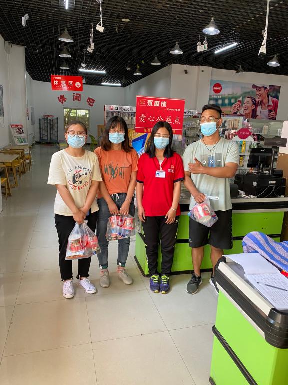 永盛成超市师院店一直秉承“服务民生、改变生活”的公司理念,自营业以来,始终坚持“为学生谋福利,为师生做贡献”经营宗旨。2020届毕业生返校后,积极与学生资助管理中心联系,主动为200名贫困毕业生发放爱心返程物资,价值5000元。学生返校后实施封闭式管理,为了方便学生日常生活,永盛成超市师院店免费发放价值1000元的塑料袋,同时还提供一批优质快销食品做特价让利活动,让利金额15000元。