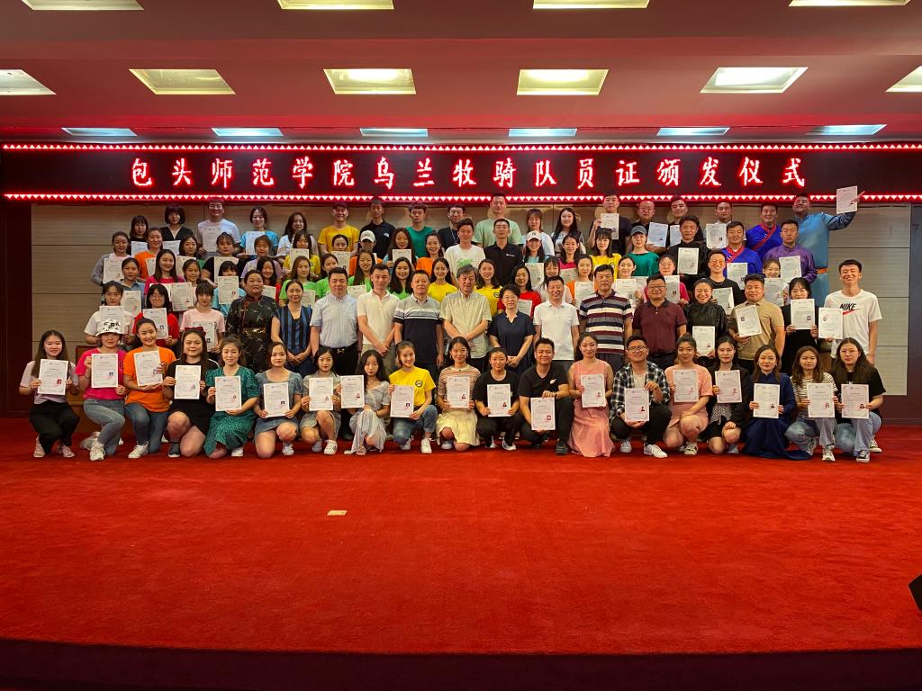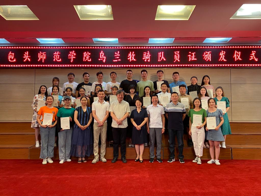 7月4日下午,包头师范学院乌兰牧骑队员证颁发仪式在音乐楼二楼博艺厅隆重举行,校党委委员、宣传部部长史瑜,音乐学院院长、校乌兰牧骑队长崔东伟,音乐学院副院长贾晓光、音乐学院部分专业教师及近百位乌兰牧骑队员参加了仪式。崔东伟老师主持了颁发仪式。