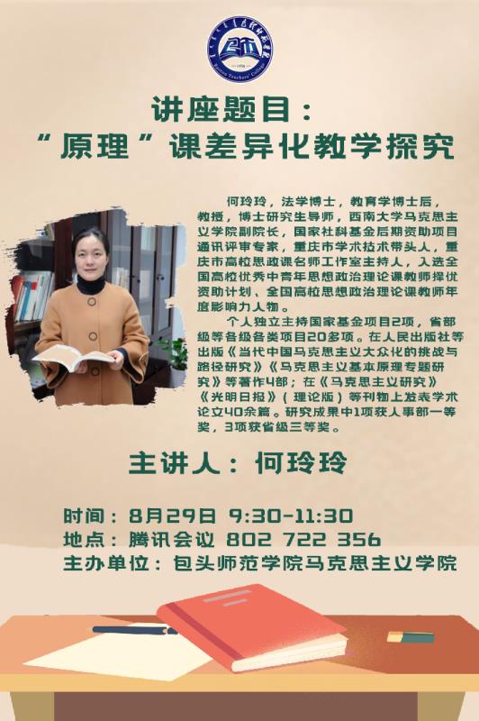 8月29日上午,西南大学马克思主义学院副院长何玲玲教授应马克思主义学院邀请,通过腾讯会议作了题为《“原理”课差异化教学探究》的专题讲座。讲座由马克思主义学院副院长刘翠芬主持,马克思主义学院全体教师到场聆听并参与讨论。
