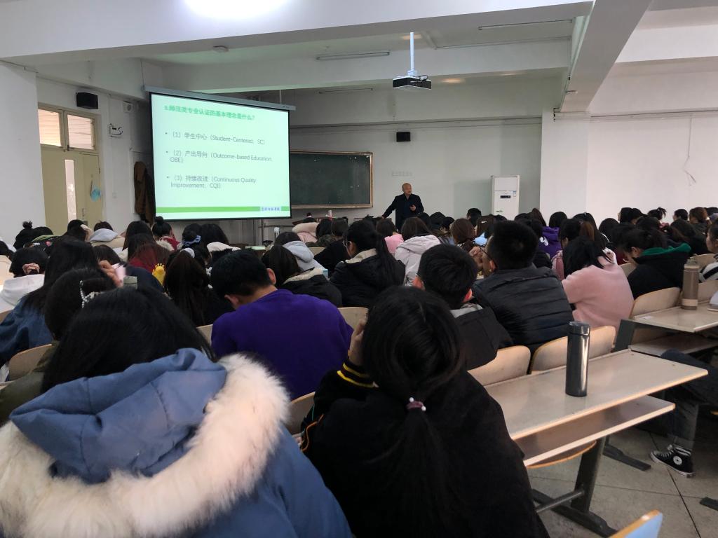 王有亮教授从师范类专业认证的内涵、师范类专业认证的指导思想、师范类专业认证的基本理念、师范类专业认证标准是如何体现学生中心、如何体现产出导向以及如何体现持续改进六个方面介绍了认证理念视角下的高校本科人才培养问题,重点对以学生为中心、以产出为导向、持续质量改进进行讲解,提出要认识到专业认证与学生发展密切联系,要把毕业要求作为本科教育教学的重要主线,逐步形成基于成果导向的教育。他结合我校实际,重点对学生发展的要求提出殷切希望,将质量要求内化为全校师生的共同价值追求和自觉行为。(马克思主义学院)