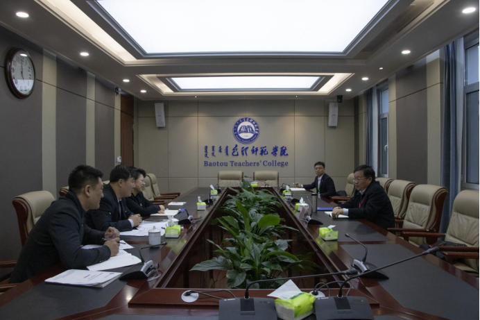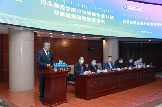 11月30日上午,教育部师范类专业认证专家组见面会在行政楼四楼第二学术报告厅举行。李中国组长主持见面会。包头市人民政府副市长、党组成员武二斌同志出席会议,自治区教育厅教师工作处副处长李刚出席会议并致辞。