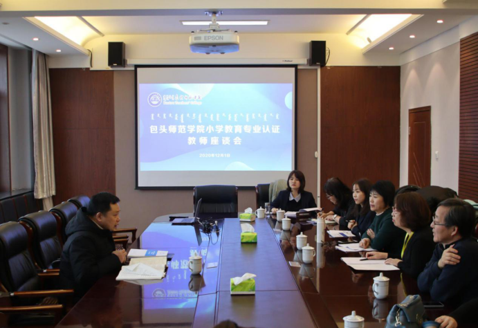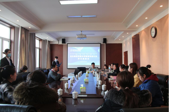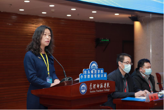 见面会上,金桩院长代表学校全体师生,对专家组的到来表示热烈的欢迎和衷心的感谢,并简要介绍了学校的办学历史和师范教育特色工作基本情况。金桩院长表示,师范教育是我校的传统和特色,六十多年来,我校一直承担引领内蒙古西部师范教育事业发展的重任,始终将师范教育作为办学根基和立校之本,培养的毕业生大部分扎根于基础教育战线教书育人,为包头市、自治区乃至西部地区基础教育事业发展做出了巨大贡献。他指出,教育科学学院作为第一个接受认证的单位,要珍惜机会、全力配合、全力支持专家组的工作,以谦逊的态度接受专家们全方位、立体式的诊断,为全校师范类专业接受认证做好“范本”。全校师范类专业单位要通过专家组的权威指导,举一反三、深刻反思,对“学生中心、产出导向、持续改进”的认证理念,进一步认识深、理解透、把握准,坚持以新的发展理念谋划师范教育发展,全面提高我校师范类专业人才培养质量,为实现学校第三次党代会确定的“建设教师教育特色鲜明、多学科协调发展、服务地方能力较强的高水平师范院校”目标而努力奋斗!