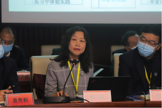 教育科学学院院长郝红英教授从专业沿革、专业特色、建设成效和持续改进四个方面就专业自评报告做了补充说明。专家组成员针对有待核实询证的问题,与学校领导、相关部门负责人进行了互动交流。