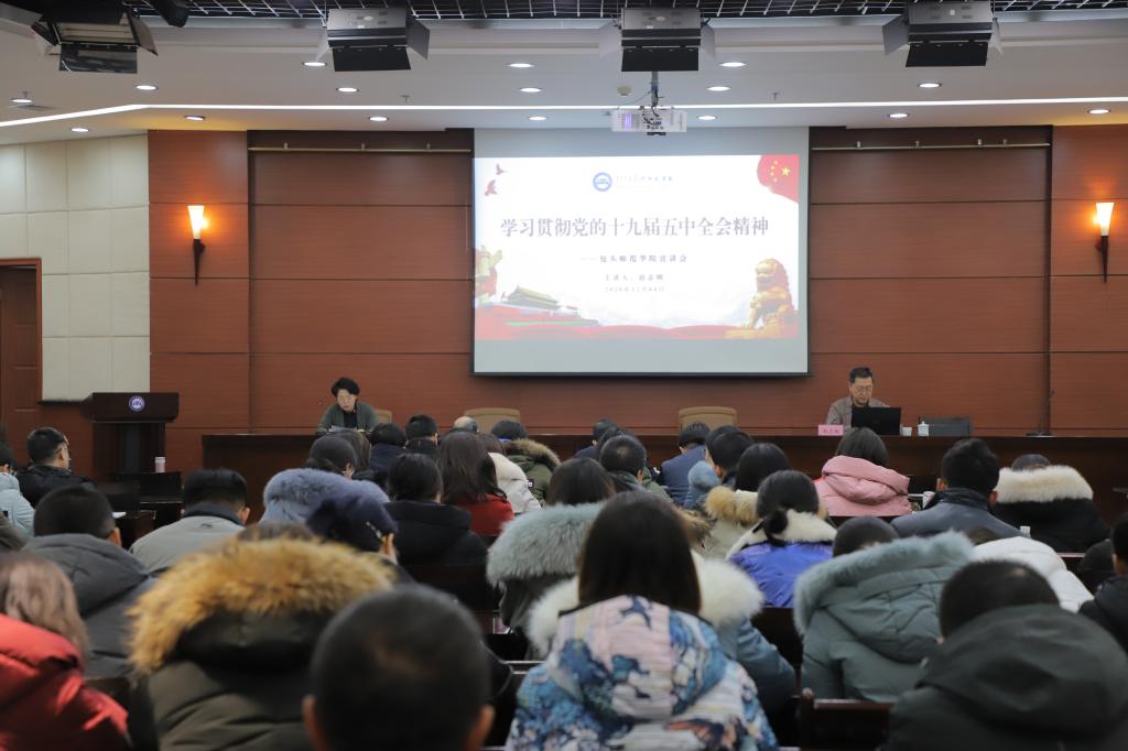学习宣传贯彻党的十九届五中全会精神,是当前及今后一个时期的重要政治任务。赵志刚同志的宣讲报告全面系统、脉络清晰、内涵丰富,为我校师生全面理解和准确把握党的十九届五中全会的新思想、新观点、新要求,科学谋划学校下一阶段工作提供了有力指导,帮助我校干部师生把学习贯彻全会精神与科学编制好学校“十四五”改革与事业发展规划、深化新时代教育教学改革等工作有机结合起来,坚持以新发展理念引领学校高质量内涵式发展,为深入推进学校各项事业发展奠定了基础。(宣传部)