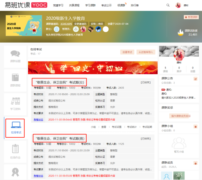 新生入学教育考试界面