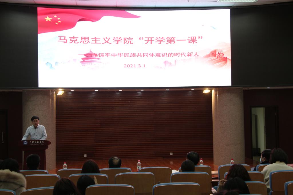 晚7点20分,马克思主义学院率先组织全体少数民族预科生在第一学术报告厅组织开展了“做铸牢中华民族共同体意识的时代新人”为主题的马克思主义学院“开学第一课”活动。会上,2020级预科理科班团支部书记阿茹汗同学和文科班团支部书记包都然同学分别以《铸牢中华民族共同体意识 争做逐梦前行的时代青年》和《做铸牢中华民族共同体意识的时代新人》为题向全体同学作了交流发言。从不同的角度谈了各自对铸牢中华民族共同体意识的认识与体会,号召全体同学:作为新时代的大学生,我们有责任和义务,以铸牢中华民族共同体意识为主线学习知识,增长本领,建设富强民主文明和谐美丽的社会主义现代化中国,让民族团结之花开遍靓丽北疆,万众一心、同舟共济,战胜前进道路上的一切风险挑战,把中华民族伟大复兴的中国梦变成美好现实。