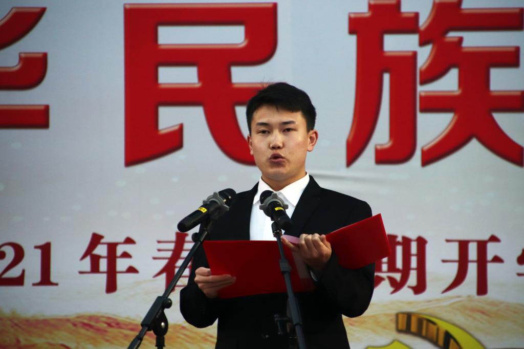 仪式后,化学学院2020级化学本科班(原民族预科班学生)阿希塔同学进行国旗下的演讲。他向全校大学生发出倡议:作为新时代的青年,我们要热爱伟大祖国,做有“情怀”的包师青年;我们要团结一心,做有“志气”的包师青年;我们要练就过硬本领,做有“底气”的包师青年;我们要学会笃实,做有“担当”的包师青年!