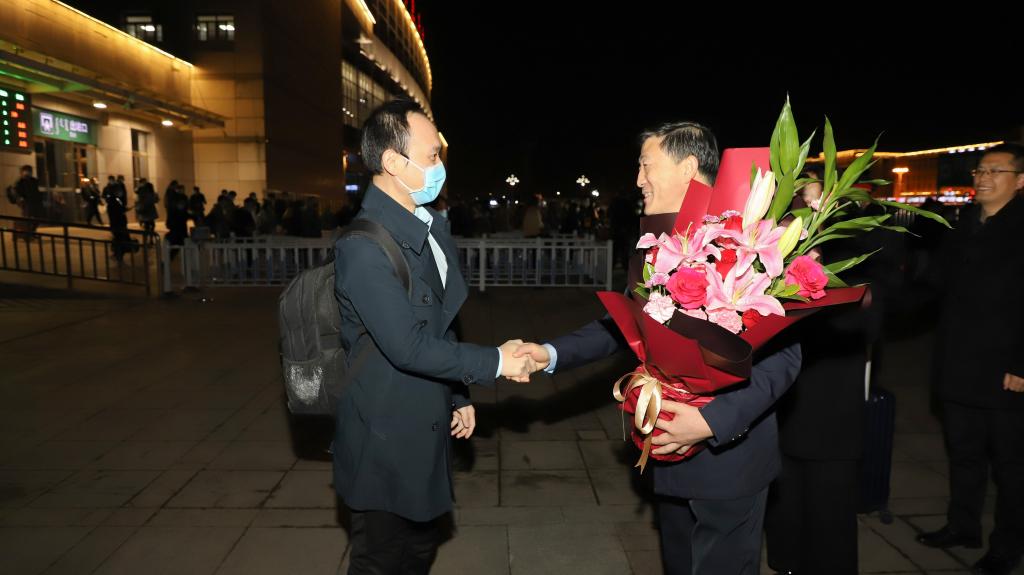 3月12日晚,出席十三届全国人大四次会议的全国人大代表、我校音乐学院副教授、民革会员、男高音青年歌唱家马春雨老师圆满完成使命,乘高铁回包。校党委副书记施纪华,党委委员、统战部部长张彩霞、音乐学院党总支书记赵玉强和统战部副部长李培欣迎接马春雨老师履职归来。