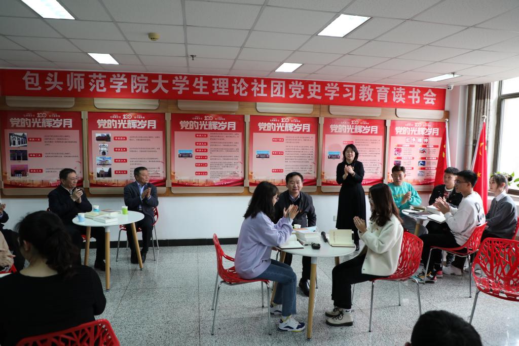 包头师范学院马克思主义学院副院长、自治区优秀思政课教师李德英老师,在交流后表示:“作为高校的思政课教师,我们要充分挖掘并发挥党史学习教育在高校思政课体系建设中的重要价值,把党的奋斗历程和伟大成就贯穿思政课的教学过程,让党的光辉历史在包师的讲台上常讲常新,让我们的大学生学有所思、学有所悟、学有所获,办好人民满意的教育,为培养德智体美劳全面发展的社会主义建设者和接班人,为实现中华民族伟大复兴的中国梦贡献力量。”