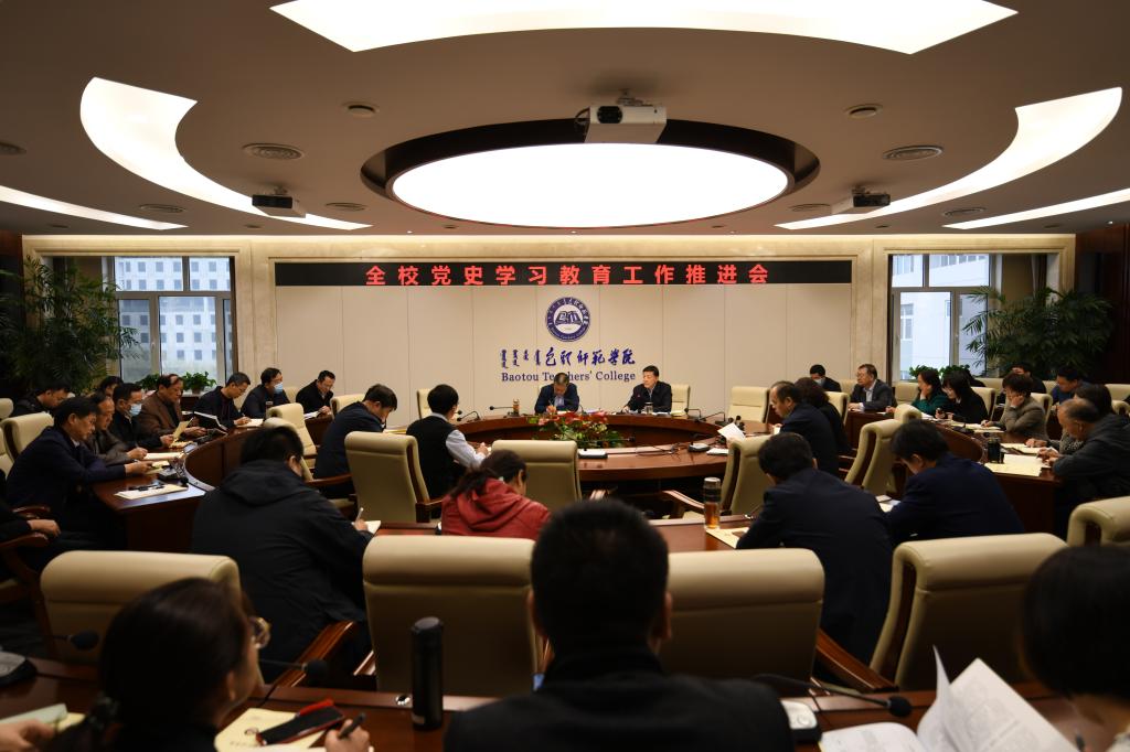 4月1日上午,学校召开全校党史学习教育工作推进会。校党委书记王永明主持会议。党委副书记施纪华出席会议,各二级学院、部门负责人参加会议。