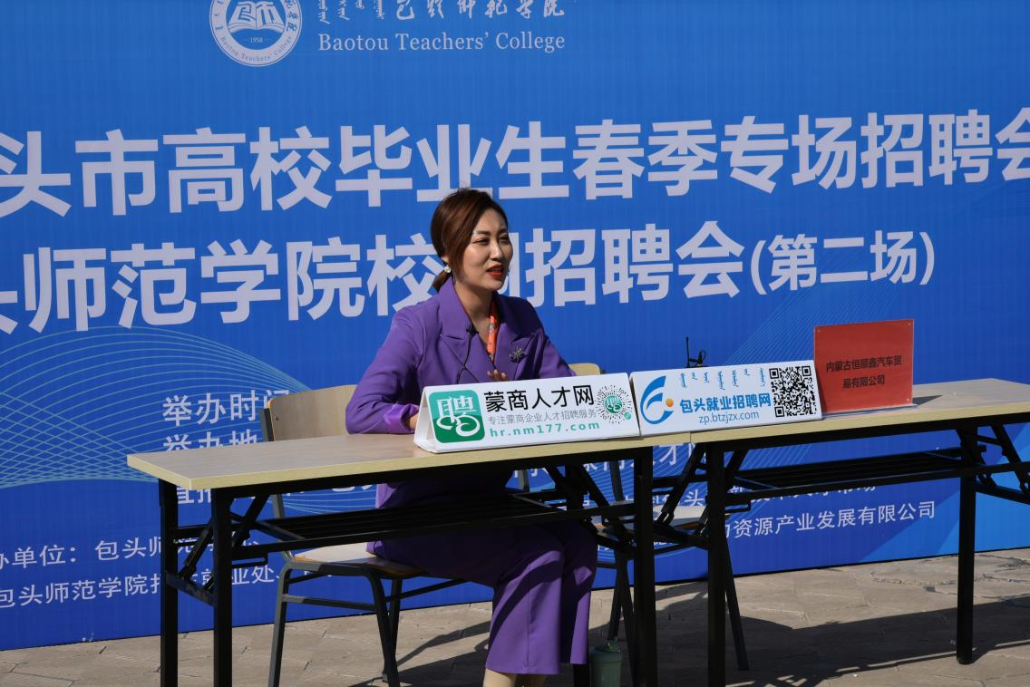 “直播带岗”是本次招聘会的一个亮点,招生就业处邀请了蒙商人才网的工作人员,专门设置了一个直播带岗专区,通过在线投递简历、直播招聘、短视频面试等“新型”的招聘方式,给不能到现场参加招聘会的毕业生提供了便利。“直播带岗”的招聘方式颇受我校毕业生的欢迎。除此之外,部分参会企业线上线下结合的运营形式也是本次招聘会的另一个亮点,给我们毕业生提供了新媒体运营主管、电商助理、主播等新型的就业岗位。