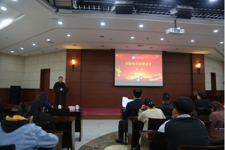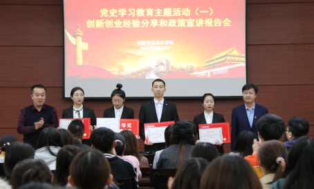 根据学校党史学习教育工作安排,响应“我为师生办实事”的号召,为切实增强大学生思想政治素质,提升毕业生创业就业能力,4月15日创新创业教育学院联合学生工作部、招生就业处、团委、教师教育学院在图书馆会议厅举办创新创业经验分享和政策宣讲报告会。本次宣讲会邀请了包头市人力资源和社会保障局大学生就业指导中心主任贾勇,全国脱贫攻坚先进个人、我校体育学院优秀校友齐晓景,内蒙古鹿神企业管理咨询中心董事长、我校音乐学院优秀校友赵楠,为毕业生代表作了宣讲。各学院分管创新创业工作的领导、具体工作人员、创新创业教育学院、学生工作部、招生就业处、团委、教师教育学院全体工作人员参加了会议,会议由创新创业教育学院院长张东虎主持。