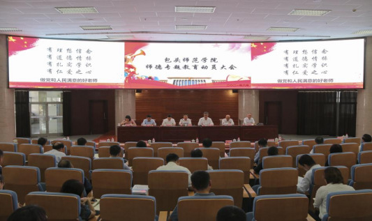 会上,校党委副书记施纪华部署学校师德专题教育工作,对《包头师范学院开展师德专题教育工作实施方案》进行了详细解读。他指出,此次专题教育的目标任务是以党史学习教育为重点,系统开展“四史”学习教育,引导教师坚定理想信念、厚植爱国情怀、涵养高尚师德;将师德专题教育与教师思想政治工作相结合,引导教师提升政治站位,知晓师德“底线”和“红线”,把师德规范内化于心、外化于行;将师德专题教育贯彻到2021年师德师风建设全年工作,强化宣传教育,营造弘扬高尚师德、潜心立德树人的良好氛围。他对组织开展专题学习、开展从教行为规范教育、组织实施专项培训、做好典型宣传、集中开展警示教育、组织师德师风建设月活动等6个方面的教育内容进行了具体安排;同时提出了“四个推进”的工作要求,即高度重视统筹推进、教育引导协同推进、强化宣传有力推进、督促指导压实推进。