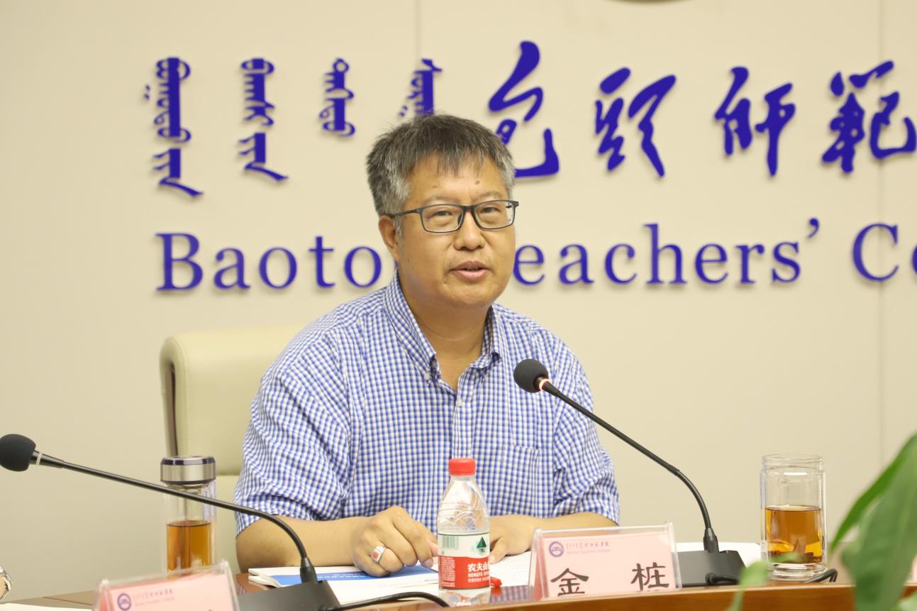 金桩教授就贯彻落实党中央、国务院决策部署和自治区研究生教育会议精神从四个方面提出工作要求:一是要统一思想,准确认识我校研究生教育工作的发展现状;二是要提高站位,增强推动新时代研究生教育高质量发展的紧迫感和使命感;三是要夯实责任,全面推动新时代研究生教育工作各项部署落到实处,要贯彻落实立德树人根本任务,要提升研究生教育办学规模和层次,要提升研究生人才培养质量,要坚持提升研究生培养队伍水平,要着力打造包师研究生教育品牌;四是要强化领导,全力推进我校研究生教育高质量发展,主要举措有:提高政治站位,把提升质量作为发展研究生教育的核心;加强顶层设计,优化结构推进学科内涵式发展;坚持立德树人,持续打造优质研究生导师队伍;加强交流合作,营造研究生教育工作的良好外部环境。