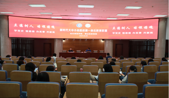 为深入贯彻习近平总书记关于思政课建设的重要论述,全面落实党中央和自治区加快思政课改革创新的决策部署。8月29日下午,我校与包头市青山区教育局联合举办新时代大中小幼思政课一体化专题讲座。本次讲座特邀华东师范大学张俊华博士主讲,题为“新时代大中小幼思政课一体化:理解与行动”。包头师范学院马克思主义学院教师、政治与法律学院教师、教务处相关人员,青山区各中小学、幼儿园教师代表,共计九十余人参加讲座。