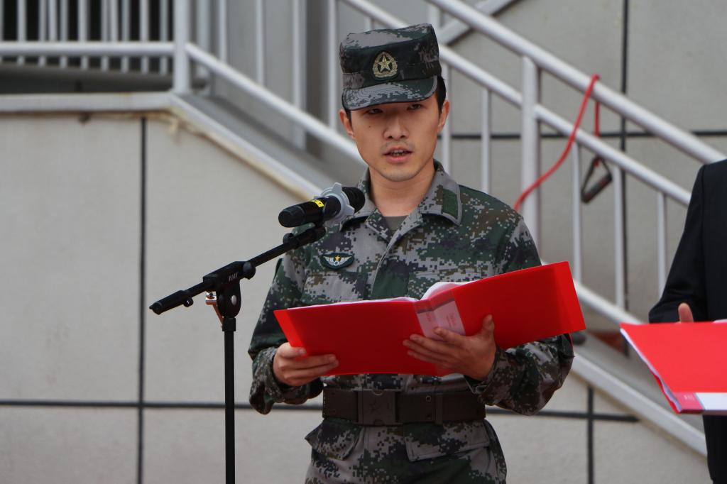 军训总教官王在新代表全体教官作表态发言。