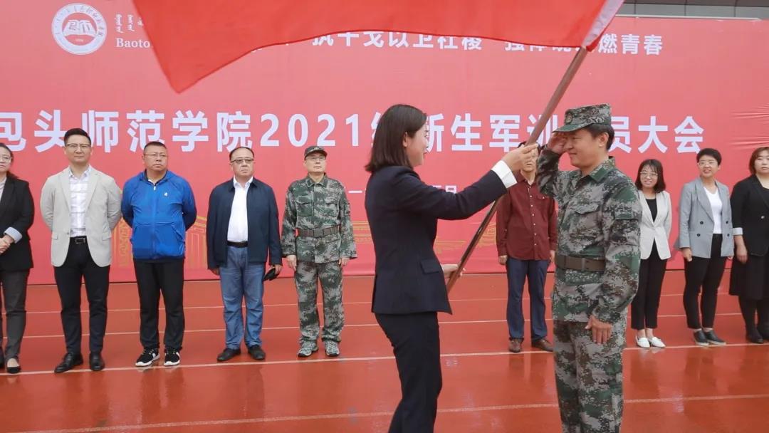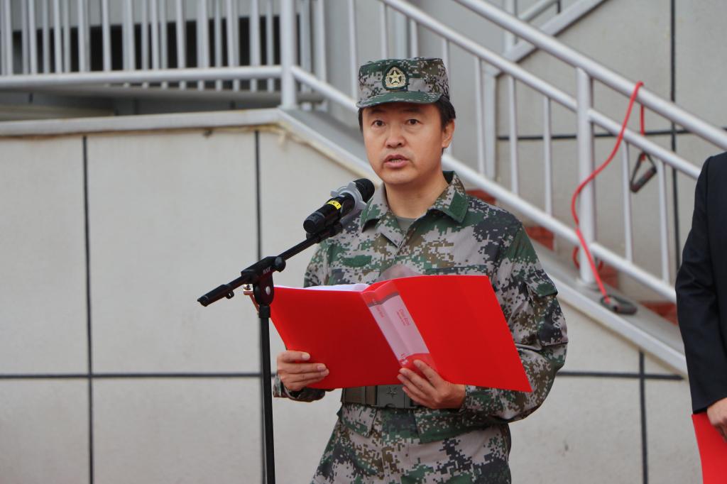 薛志东团长作军训动员讲话,对新生军训工作提出具体要求:一是要训出深厚的家国情怀;二是要训出铁一般的纪律;三是要训出坚强的意志品质;四是要训出整齐划一的队列队形。他强调,全体参训学员要从军训开始,端正态度、服从命令、严守纪律、勇敢顽强,精益求精地完成每一个训练科目,用整齐划一的队形,标准的动作,干净整洁的宿舍,来展现训练成果,体现包师人的精气神。