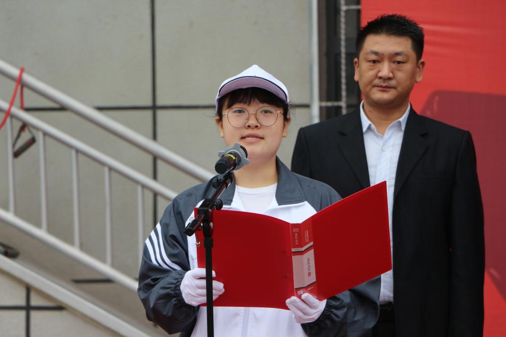 升国旗仪式后,文学院2021级新生王艺翔同学代表全体参训学员作表态发言。