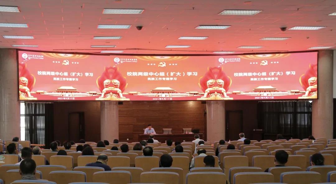 9月17日下午,学校举行校院两级中心组(扩大)集体学习,在校校领导、全校副处级以上领导干部、各党总支统战委员、党外知识分子代表参加了此次学习。校党委副书记施纪华主持会议。