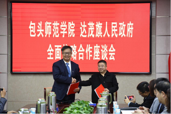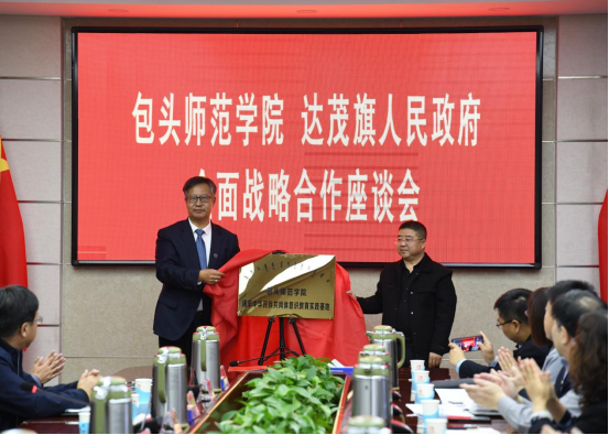 签约、揭牌仪式上,我校与达茂旗政府就民族团结、草原生态、师资培训等领域合作进行了深度交流。