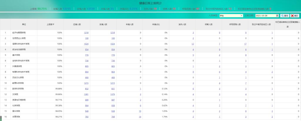 学生工作部构建“学生工作部—学院学生工作领导小组—辅导员、班主任—学生班级”疫情防控四级网格信息摸排工作机制,坚持日报告和“零报告”制度,通过健康日报系统、公寓门禁系统、学工微信群等信息化手段,动态化掌控全校学生身体健康信息;重点排查近期与呼市新冠肺炎确诊病例有时空交集的密切接触者和次密切接触者,并及时协助青山区疾控中心和校医院落实排查人员,做好管控工作,实时跟踪核酸检测结果并建立排查数据库;密切关注学生情况,在调查统计基础上,积极回应学生关切的问题,及时反馈学生诉求,协调有关部门积极应对、妥善解决。同时,要求学生工作部全体工作人员24小时待命,保持通讯畅通,随时准备根据疫情情况开展排查工作。