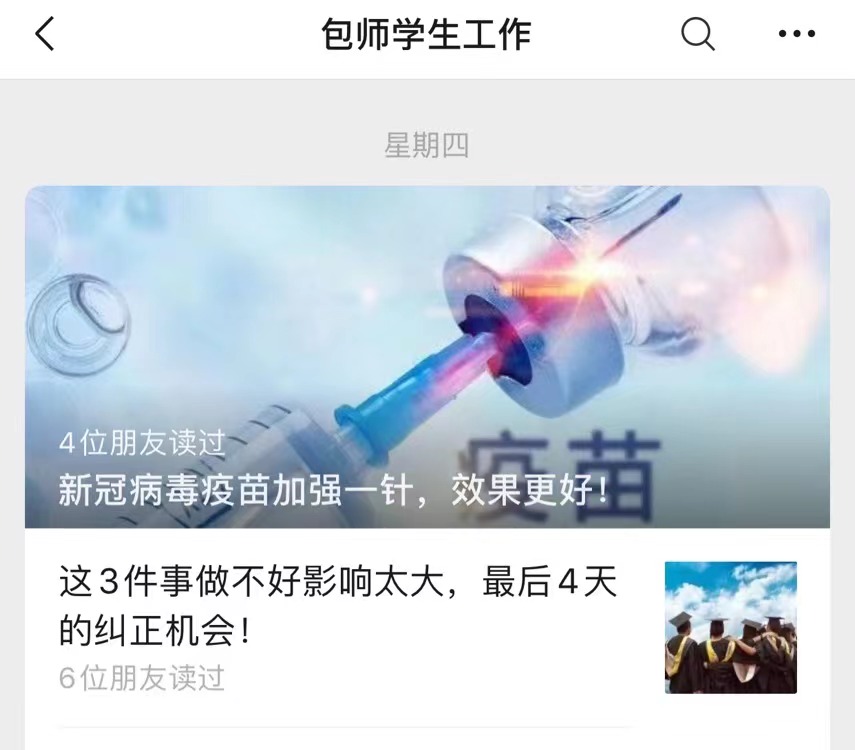 本轮疫情防控工作开始,学工部就要求各学院学工队伍要提高政治站位,充分发挥辅导员工作主动性,创新学生工作模式,借助网络平台和多媒体、通讯工具,做到疫情防控检查排查和教育宣传同步走。同时采取系列措施加强教育宣传和管控力度,组织各学院召开主题班会,加强对学生尤其是走读学生的疫情防控知识培训,通过“包师学生工作”“包师易班”微信公众号和易班网等媒体平台每日推送官方疫情防控知识;再次发布疫情防控工作通知,要求各学院按照“非必要不外出”的原则,严格学生请销假制度,严格把控学生外出请假,精准掌握学生请假外出行程路线,及时报备请假外出学生情况;加大全体学生健康日报打卡督促检查力度,每日9:00开始,督促检查各学院学生打卡情况,及时反馈相关学院;加大校园管控力度,联合保卫处严格执行疫情防控期间校园管控制度,严禁学生翻墙出入校园,一经发现,依据相关规章制度从快、从重、从严处分;倡议学生不点外卖,不与外界人员接触,降低疫情输入风险。