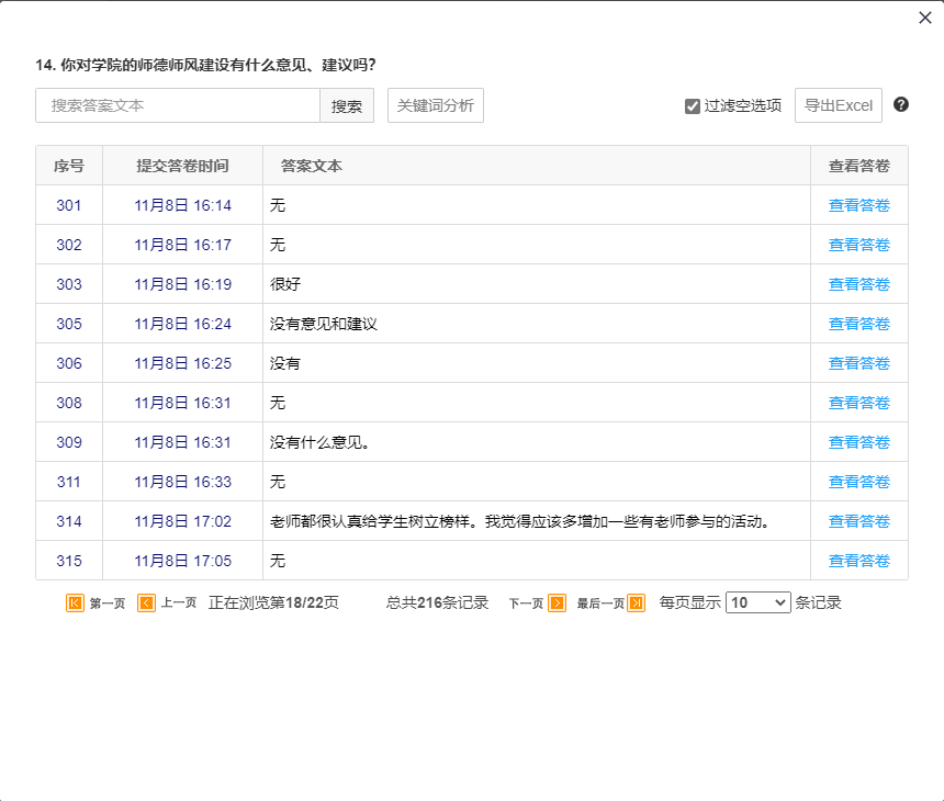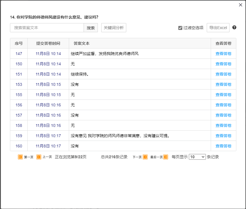 ——开展主题活动,推动建设工作。一是为大力弘扬劳模精神、劳动精神和工匠精神,充分发挥教学技能比赛在提高教师队伍素质中的示范引领作用,进一步提高学院青年教师教学能力,夯实青年教师教学基本功,提升课堂教学质量,学院举办了学院青年教师教学技能大赛院赛。二是面向全院学生开展了师德师风网上问卷调查,听取学生对师德师风建设的意见。三是召开学生代表座谈会,听取学生对学院师德师风建设的意见和建议,以及对学院学生管理、教学管理等各方面的建议,提升学院整体管理水平。