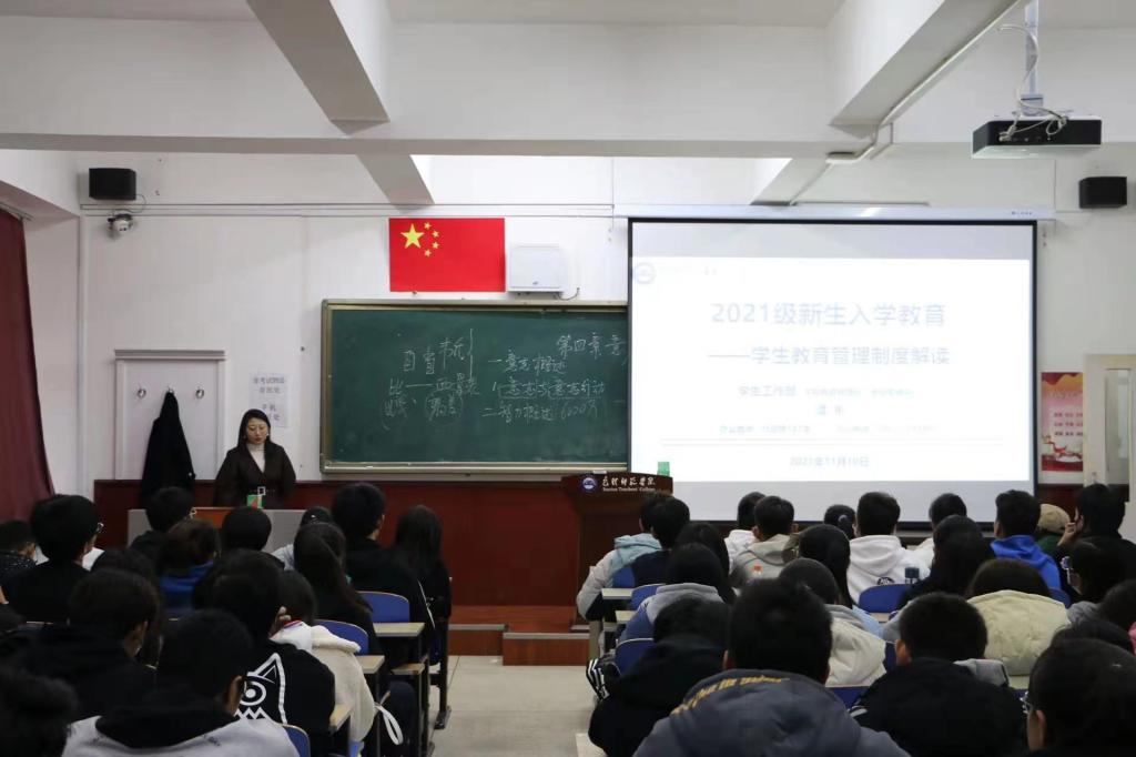 按照学院2021级新生入学教育工作方案安排,进一步落实“十要十不要”学生日常行为规范,营造优良学风,优化育人环境,11月10日信息学院邀请学生工作部赵雪晶、谭彬两位老师,为2021级全体新生进行校规校纪教育和奖助学金评审专题讲座。按照疫情防控工作要求,此次讲座采用线上、线下同步直播的方式,大一全体新生参加讲座。