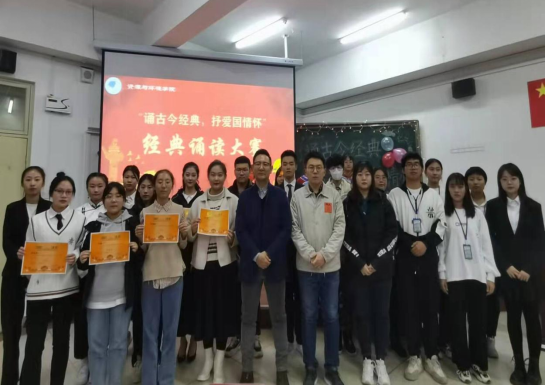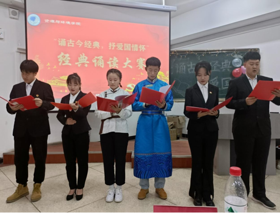 11月18日晚19:00资源与环境学院地理爱好者协会于博学楼东204教室举办了“诵古今经典,抒爱国情怀”经典诵读大赛。学院党总支副书记恩合吉日嘎拉,地理科学专业系主任高健,地理爱好者协会指导老师李春江,团总支学生会执行主席池潇莹同学以及学院宣讲团团长孙娜同学担任了大赛的评委。