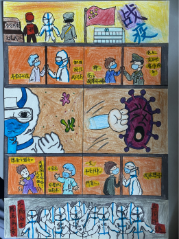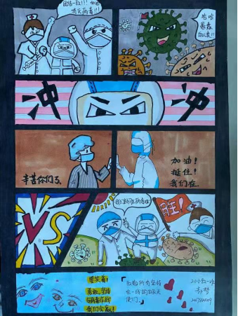 学生们通过绘画的方式从不同角度描绘出自己对抗疫精神的理解,歌颂、致敬奋战在疫情防控一线的医务人员、基层干部、公安民警、社区工作者、志愿者等人员,宣传了一方有难、八方支援的大爱精神,坚定必胜信心,弘扬主旋律,传递正能量。