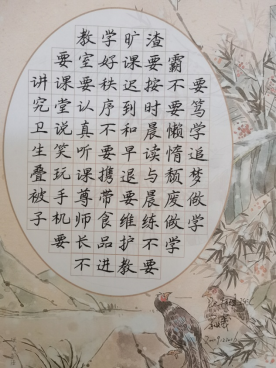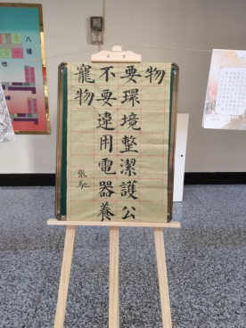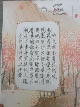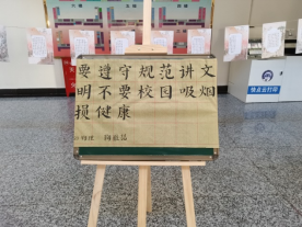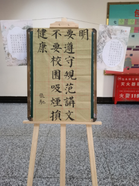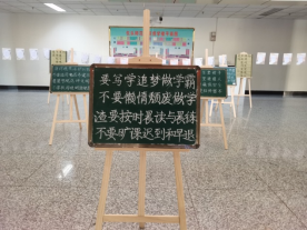 本次展示作品类型为粉笔字、毛笔字及硬笔字。均为学院前期精心筛选、从初赛中脱颖而出。作品书写内容均为我校大学生行为规范“十要十不要”。