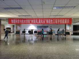 为进一步贯彻落实《包头师范学院大学生思想政治教育领航计划》,促进学院学风建设,提升我院师范专业学生专业技能,把学风建设工作融入到学生日常学习生活中,物理科学与技术学院于11月21日至11月26日在博学楼大厅举行 “树新风,展风采”师范生“三笔字”技能展示。