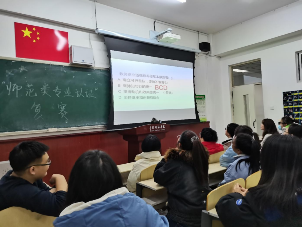 为加强同学们对师范类专业认证的认识,为专业认证贡献自己的力量,历史文化学院于11月24日晚上七点在博学楼西602举办“师范类专业认证”知识竞赛决赛,21级部分新生参加了本次活动。
