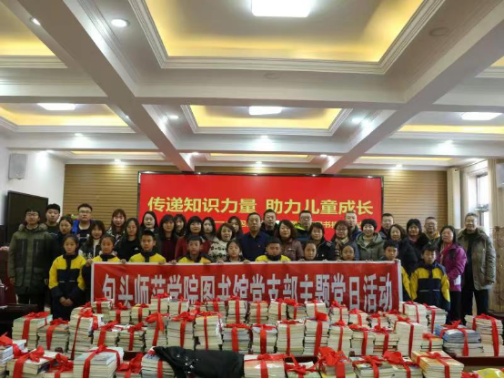 11月25日上午,图书馆党支部全体党员老师及大学生图书爱好者协会部分同学,来到固阳县新世纪小学开展主题为“传递知识力量,助力儿童成长”图书捐赠活动。