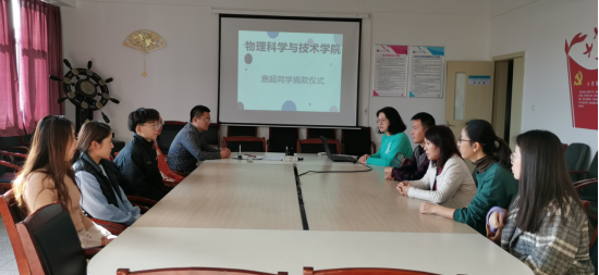 为进一步贯彻落实党史学习教育,落实推动“我为师生办实事”,11月26日,物理科学与技术学院于新逸夫楼327举行家庭经济困难学生捐款仪式。学院党总支书记李慧龙、副书记郭凯敏、副院长王芳、2020级物理ISEC专业学生鹿同学、全体辅导员及部分教师代表参加了本次捐款仪式。