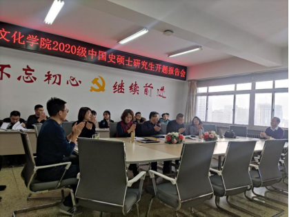 为进一步加强研究生培养环节过程管理,不断提高学位论文质量,12月10日,历史文化学院中国史一级学科硕士点2020级学位论文开题报告会在学院801会议室举行。本次开题报告会邀请包头医学院中医学院党总支书记刘忠和教授担任组长,评议小组由包头师范学院历史文化学院刘春玲教授、尚烨教授、张淑利副教授、刘晓堂博士组成,教师刘晓东担任教研秘书。全体硕士研究生导师和各级研究生列席会议。历史文化学院郝建平院长主持此次会议。