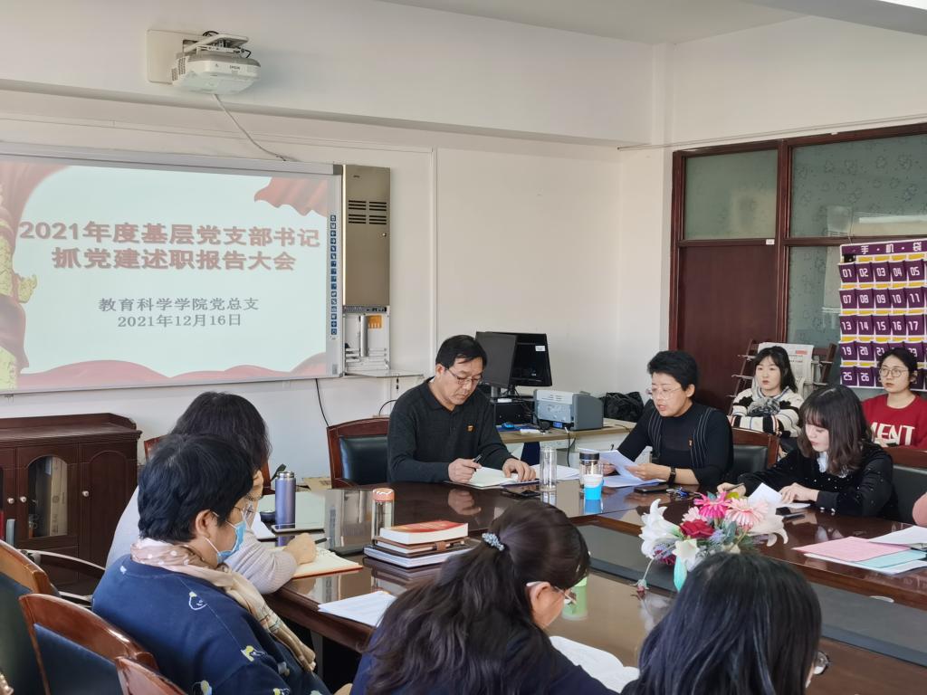 根据党委有关要求,12月16日,教育科学学院召开了基层党支部书记抓党建述职评议大会。教育科学学院党总支委员、党支部书记、全体党员教师和20名学生党员代表参加了会议。