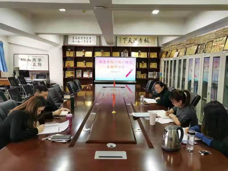 为了更好的推进学院大学生思想政治教育工作,信息学院于2022年1月7日在博学楼710会议室召开了一院一特色专题研讨会,会议由信息学院党总支副书记董海燕主持,学工办全体辅导员参加。