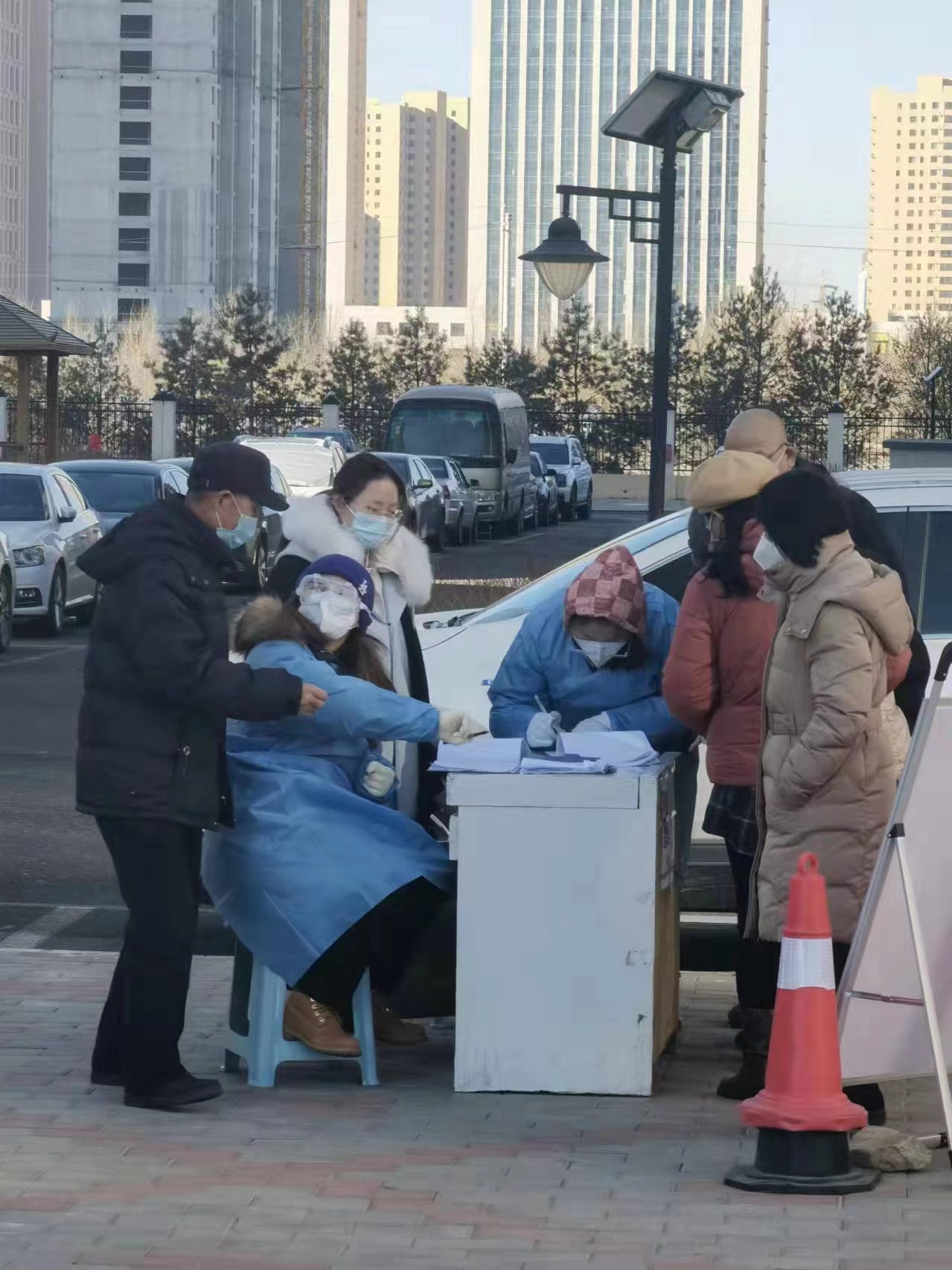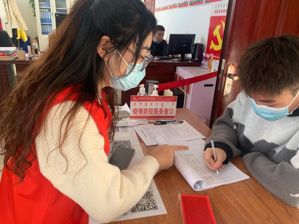 时有所需,必有所为。一个个青春的身影挺身而出,逆风而上,冲锋在前,在行动中践行初心,勇担使命。每个人都坚守着不同的工作岗位,在社区服务中心,2018级小教2班陈璐,2021级小教1班刘晓玲、阮轲,2021级学前1班张佳媛、王馨、刘嘉怡,2021级小教2班高梓睿等39位同学在志愿服务期间主要负责入口处指导社区居民线上挂号缴费、查询健康码、行程码、登记来往去处等。在乡镇疫情防控办公室,2019级小教1班杨霞、刘慧,2021级应用心理班王金皓,2021级学前1班王宇科、周舒航,2021级学前2班李楠,2021级小教2班宋紫迎等24位同学参与返乡人员信息核查,通过细致询问筛选汇总上报人员信息。在核酸检测点,2019级小教1班杨霞、刘慧同学在兴农社区对呼市包头返回人员进行核酸检测。2019级小教1班王月茹,2019级学前1班纪平、贾清郁,2020级小教2班石雨欣,王少杰等12位同学也在自己的岗位上发光发热,耐心向老人讲解扫码操作流程,他们用辛劳和汗水构筑起一道坚不可摧的青春防线。在居民家里,2021级应用心理姜鑫等3位同学挨家挨户通知居民按时参加核酸采样,并入户协助医护人员给行动不便的老人做核酸采样,为疫情防控贡献青春力量。