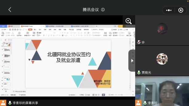疫情防控期间,为做好2022届毕业生就业工作,3月17日下午,音乐学院通过腾讯会议平台开展“北疆就业网协议签约及派遣”线上讲解,助力学生求职战“疫”。学院书记赵玉强、副书记贾晓光、各毕业班班主任及全体学生参加讲座。