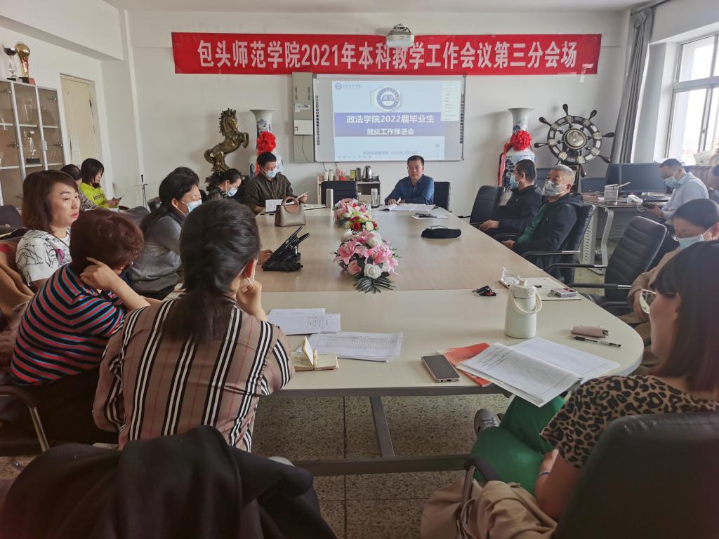为更好地贯彻落实校领导分类召开就业推进会会议精神,帮助2022届毕业生顺利就业,3月24日下午,政治与法律学院召开2022届毕业生第三次就业工作推进会,学院党总支书记高德胜、副院长李霞、副书记郭宏升和全体教师参加了会议。