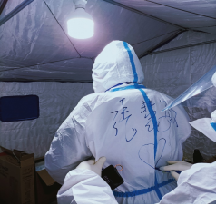 李吉娜是2020级小学教育的一名研究生,家住包头市安居社区管辖的北梁新区南六区,得知包头市疫情需要志愿者时,立即与工作人员联系并加入志愿者行列。娇小身材的她穿起了大大的防护服,带上两层口罩与其他支援南六区的医护人员跑遍6栋楼,进行51户家庭80多人的上门核酸采样。