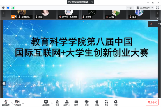 为做好大学生创新创业工作,助推创新成果转化,教育科学学院于6月2日在腾讯会议线上举办了第八届“互联网+”大学生创新创业院赛选拔赛。此次选拔赛共有38组团队参加,邀请了学校创新创业导师、招生就业处副处长苏海燕,教育科学学院副书记李燕,学院专业老师何美娜、郭佳和樊荣5位老师担任评委。